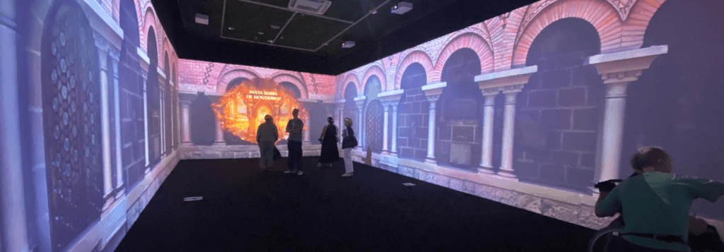 Disseny tècnic de la Sala Inmersiva dins la exposició “Montserrat 1000 anys ” que constava de 8 projectors que reaccinàven a la. presència del públic. Gestiona amb Touch Designer i Notch.